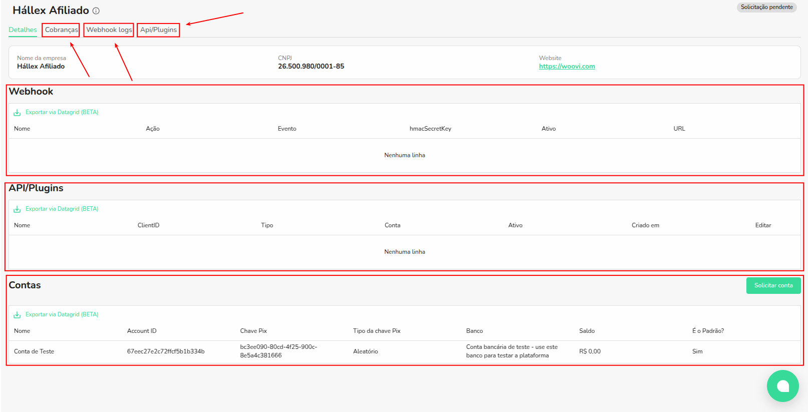 - Após o afiliado se cadastrar, ele terá acesso a uma conta na woovi como seu afiliado