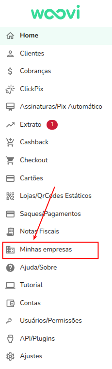 - Acesse o nosso dashboard, no menu localizado no lado esquerdo clique em "Minhas Empresas" para visualizar todos seus afiliados