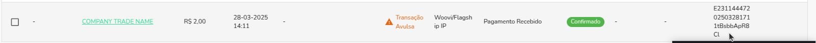 Para obter um endToEndId do tipo pix-in, vá ao dashboard, em "Extrato" localize a aba transações e clique nela